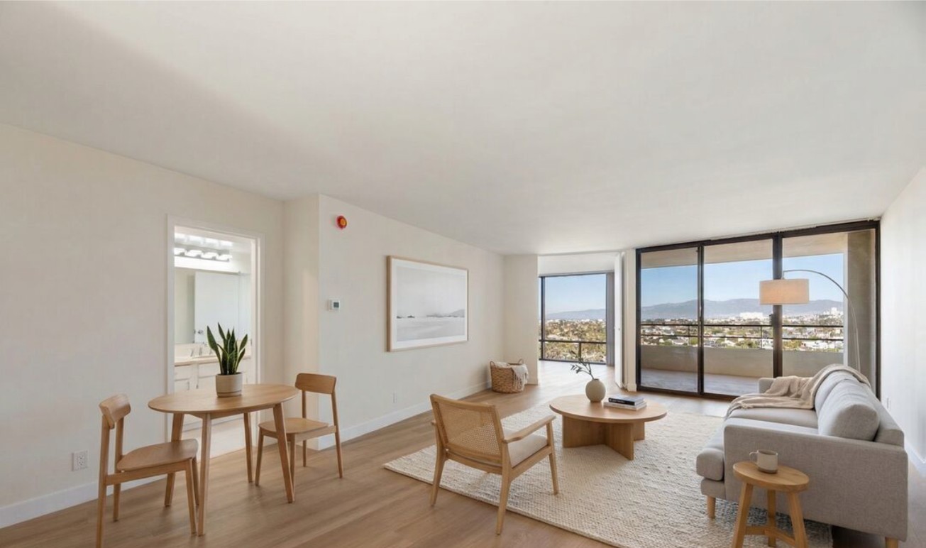 広々としたリビング・ダイニングエリアは、ゆったりとしたプライベートバルコニーへと続いており、壮大な景色を眺めながらリラックスするのに最適な空間です 。