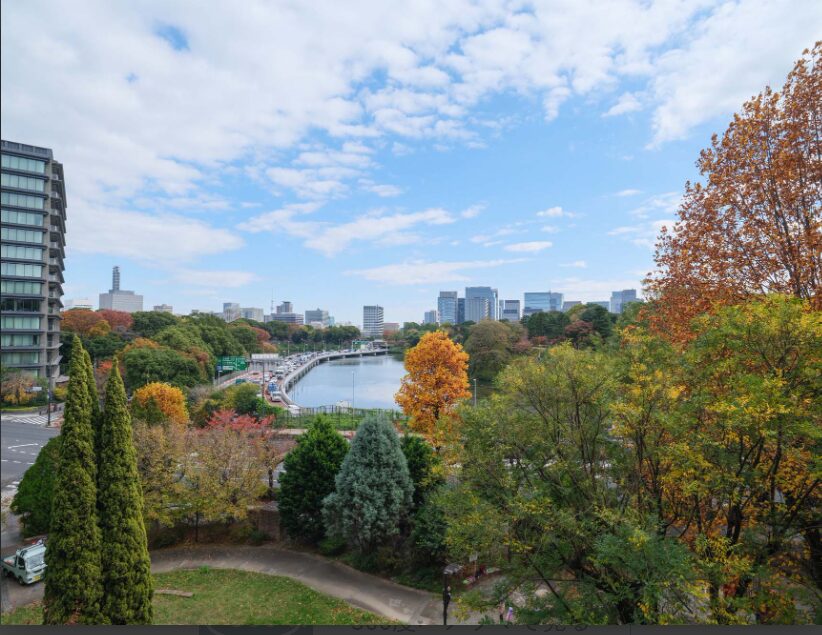 This residence offers a breathtaking, open panorama where the lush greenery of Chidorigafuchi blends harmoniously with the vast blue sky. It is a view that evolves with the seasons and the shifting light, offering a timeless backdrop to your daily life.