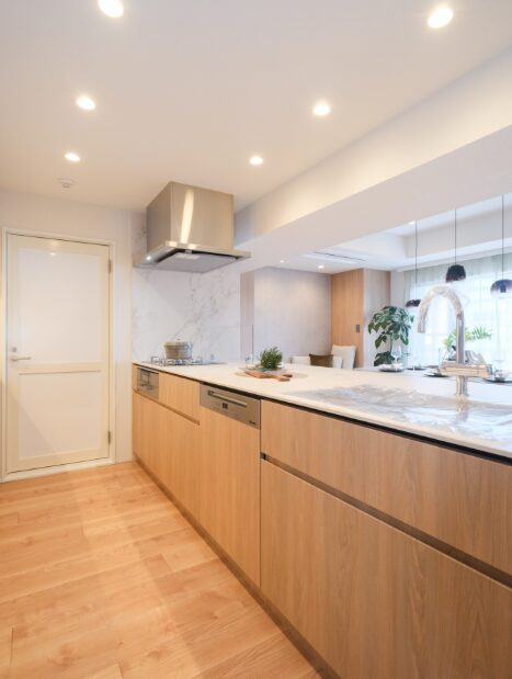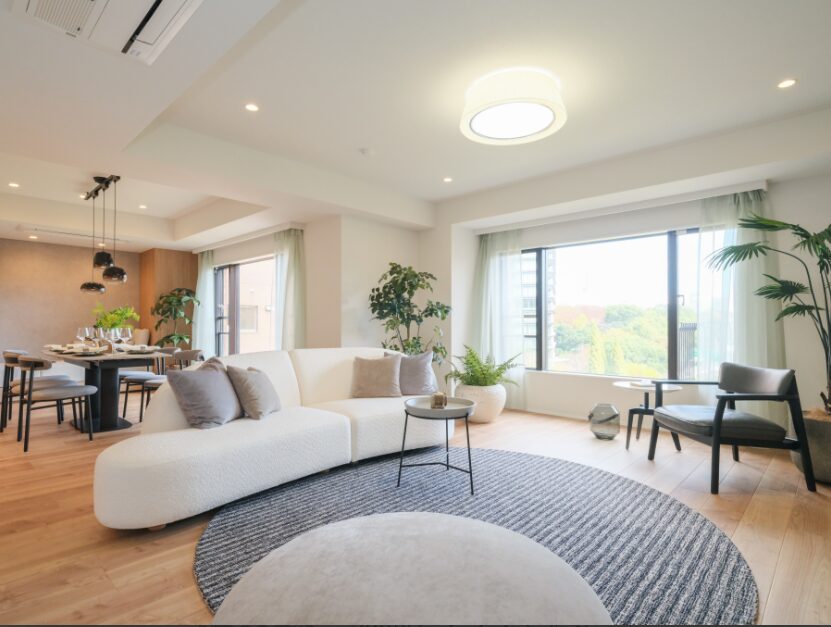 At the heart of the home is an expansive 52-square-meter (approx. 32-jo) living and dining area. Sunlight pours through oversized windows, creating a vibrant atmosphere that easily accommodates large-scale furniture without compromising the sense of space. Recently renovated to suit a diverse range of modern lifestyles, the interiors feature carefully selected materials and bespoke design elements that feel both soft and sophisticated.